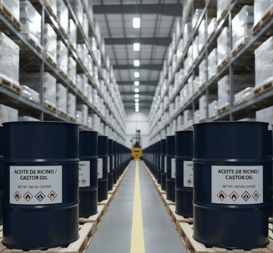 Derivados de Alto Rendimiento: Proveemos Aceite de Ricino como punto de partida para la producción de Aceite de Ricino Hidrogenado (HCO), Ácido Sebácico, Ricinoleato de Sodio y otros ésteres clave.
