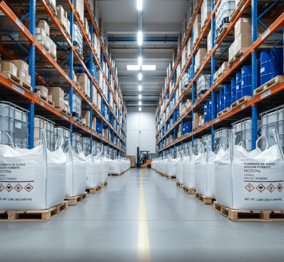 Suministro B2B en Grado Técnico: Formiato de Sodio sólido (polvo/escamas) con una pureza mínima del 95%, garantizando un rendimiento óptimo como agente reductor y buffer en procesos de curtido y construcción.